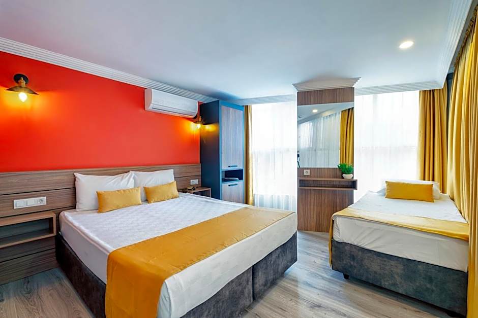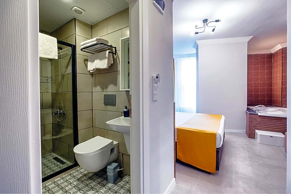 Standart Studyo is 377 square feet and includes a king-size bed 150-183 width plus satellite tv , cable tv, hairdryer, and slippers.